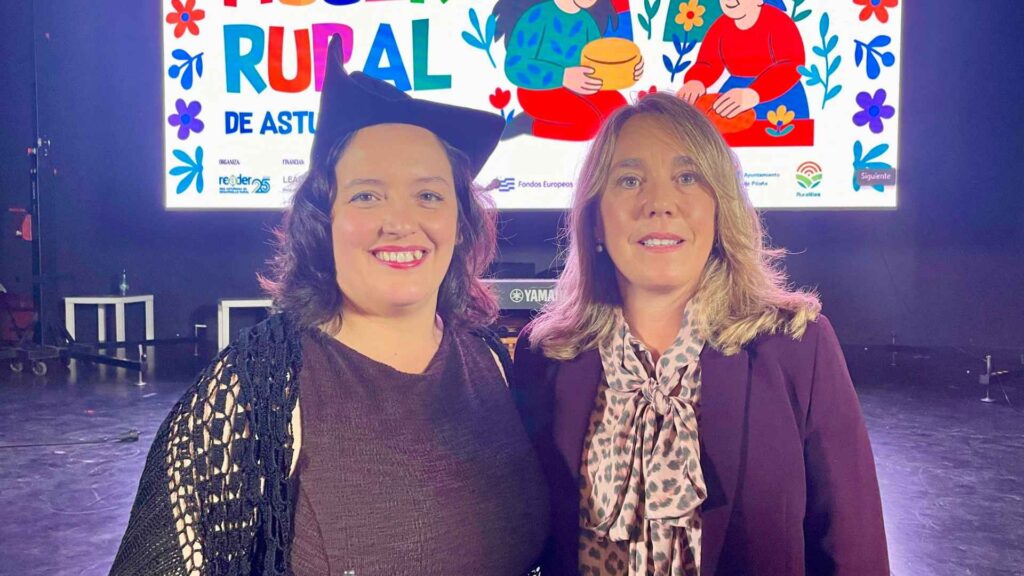 La directora de Sector Primario y Agroalimentación de Caja Rural de Asturias, Mónica Fernández, acompañó a la galardonada en el acto de entrega del reconocimiento, celebrado en La Benéfica de Piloña con motivo del Día Internacional de la Mujer Rural.