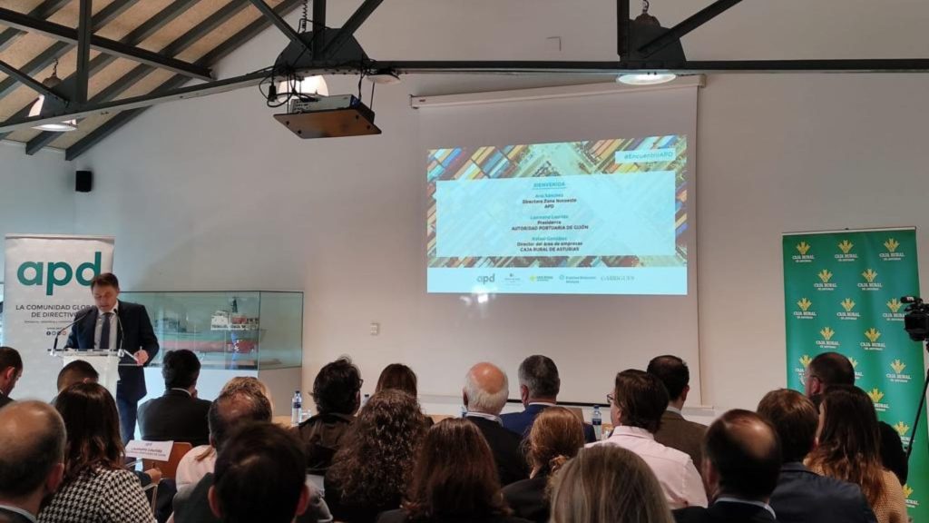 Rafael González, director del área de empresas de Caja Rural de Asturias, realizó la apertura de la jornada junto a Ana Sánchez, directora de la zona Noroeste de APD, y Laureano Lourido, presidente de la Autoridad Portuaria de Gijón.