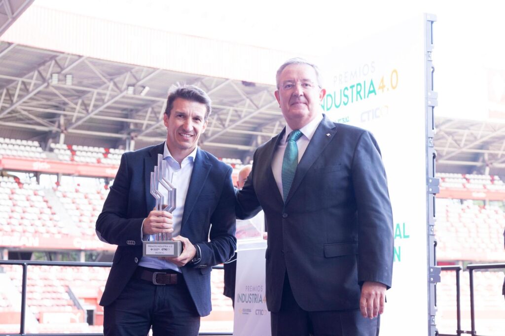 Excade fue reconocida con el Premio en la categoría de Industria y Construcción, por su esfuerzo transformador en un sector tradicional como el de la construcción. El jurado destacó su uso pionero de tecnologías como IoT, realidad virtual y geomática, así como su visión estratégica, liderazgo en economía circular y capacidad para abrir nuevas líneas de negocio. Vicente Fernández, CEO de EXCADE, recibió el premio de Antonio Romero, director general de Caja Rural.