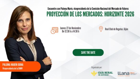 El próximo jueves 27 de noviembre junto a Llana Consultores celebraremos un encuentro con la subdirectora general de la Comisión Nacional del Mercado de Valores, Paloma Marín , bajo el título “Proyección de los Mercados: Horizonte 2026”. ¡SAVE THE DATE!